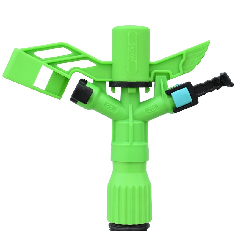 Modelo nuevo patentado y desarrollado por Yüzüak Máquina tras 2 años de investigaciones de I+D. Dispone de dos distintos ángulos de disparo de agua de 22 y 27 grados gracias a su cuerpo especial. Además cuenta con velocidad de rotación ajustable. El cabezal de aspersión está diseñado para funcionar con ambos ángulos de cuerpo. En zonas con viento, se recomienda utilizar la salida de agua de 22°. De esta manera, se minimiza el efecto del viento disparando el agua a baja altura. En zonas con viento moderado, se recomienda utilizar el ángulo de cuerpo de 27° para un riego óptimo. Gracias a su boquilla que se utiliza como tapón ciego, el cabezal de aspersión se puede utilizar también con un solo orificio de salida. Como todos los productos de Yüzüak Máquina, este producto ha sido fabricado con materias primas 100% originales y plásticos de ingeniería y aditivos profesionales para alargar la vida útil y paliar los efectos nocivos del sol y el agua.